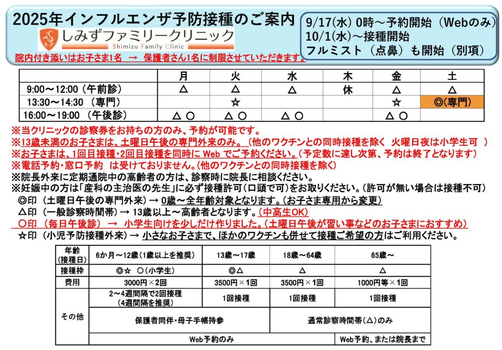 2025年のインフルエンザワクチンのWeb予約を9月17日(水)0時~開始します。